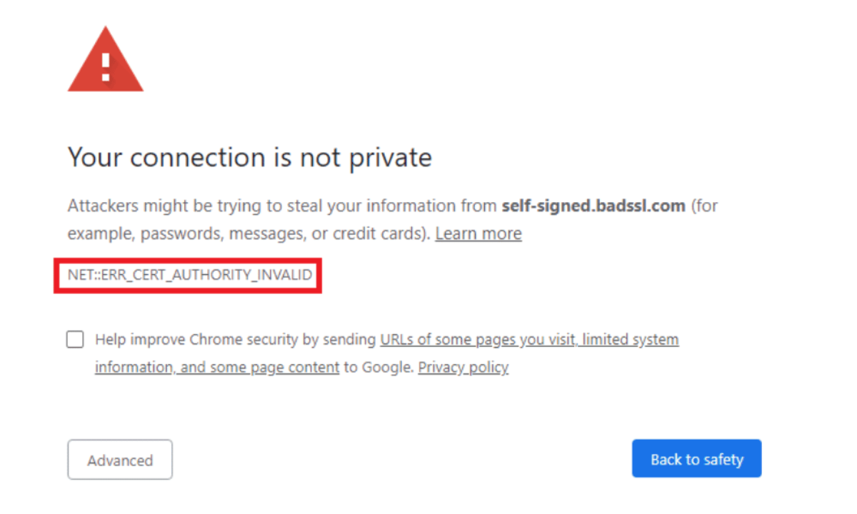 Your Connection is not Private NET ERR_CERT_AUTHORITY_INVALID Chrome